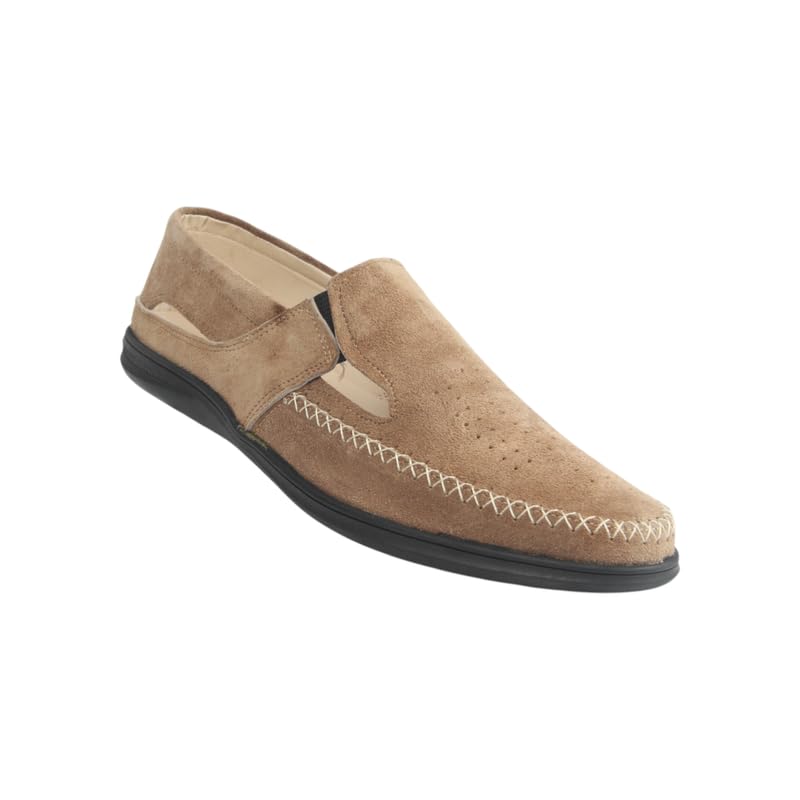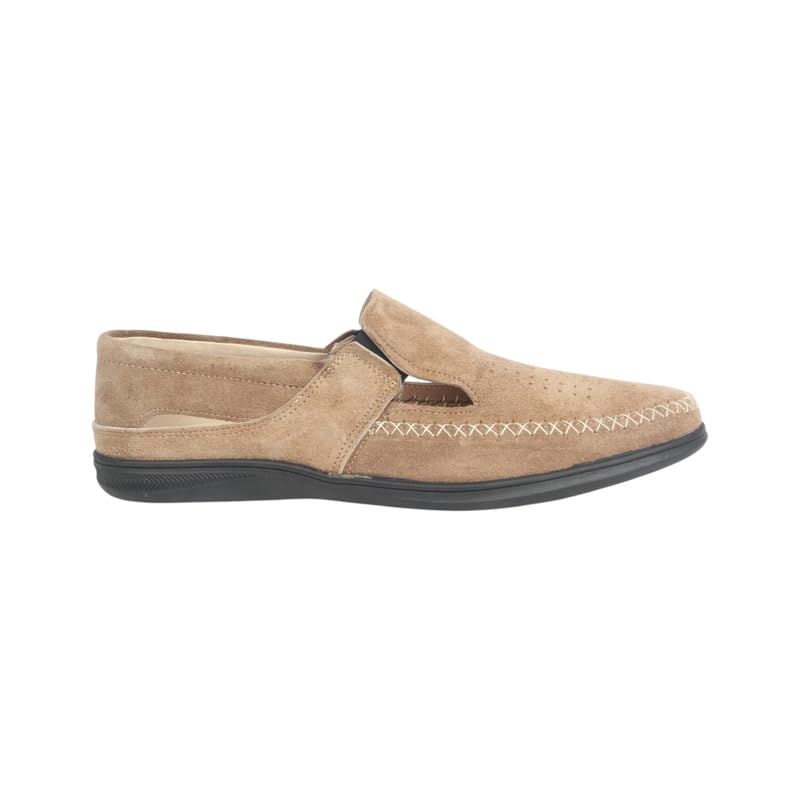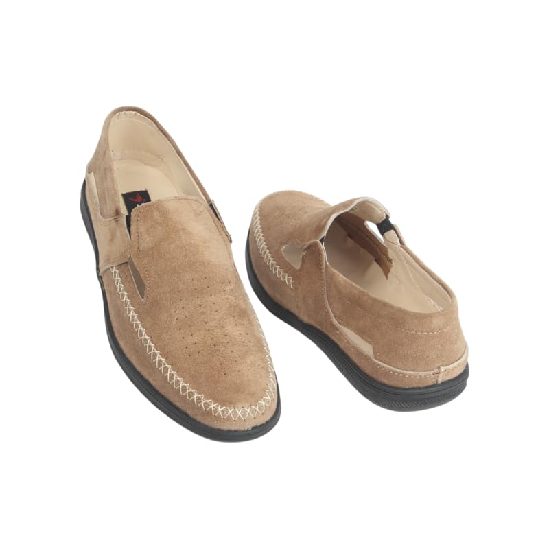 Generic - حذاء شمواه مسطح بسطح مخرم مصنوع من الجلد الطبيعي للرجال - موديل 539، مقاس 41 EU، لون بيج
