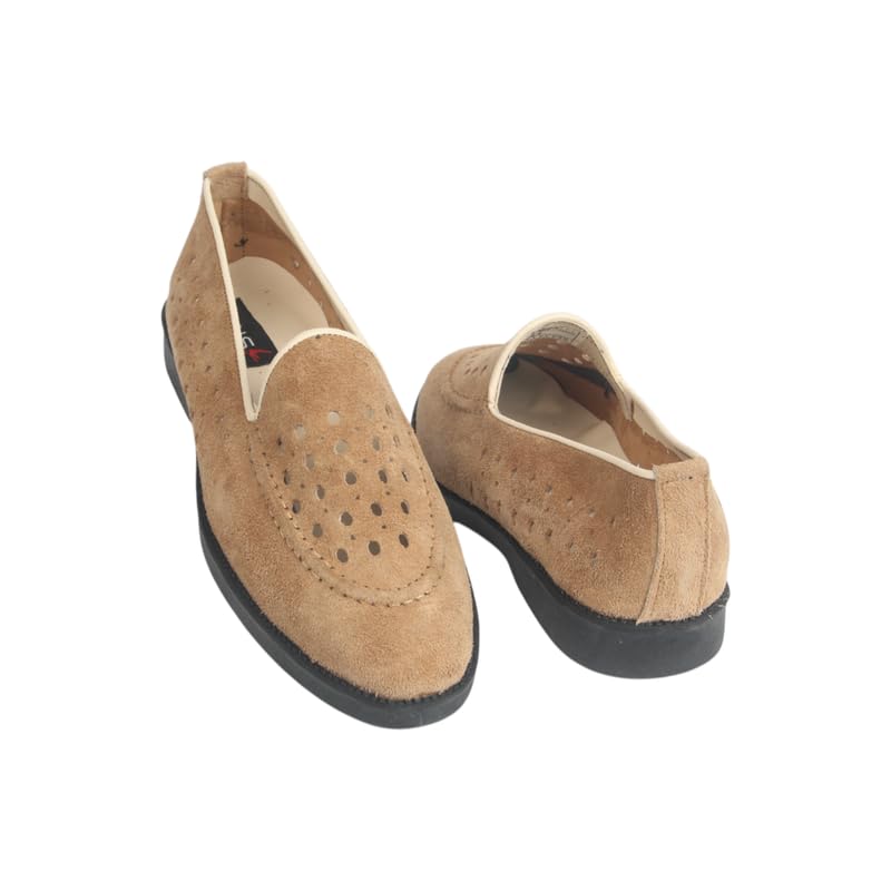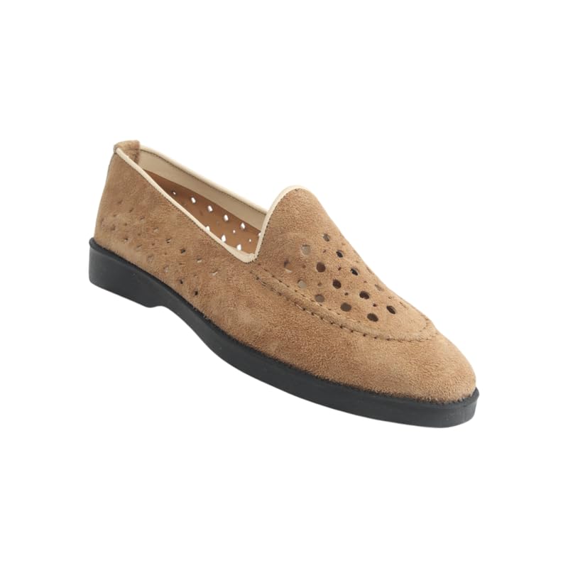 Generic - حذاء شمواه مسطح للرجال من الجلد الطبيعي، جزء علوي مخرم 573