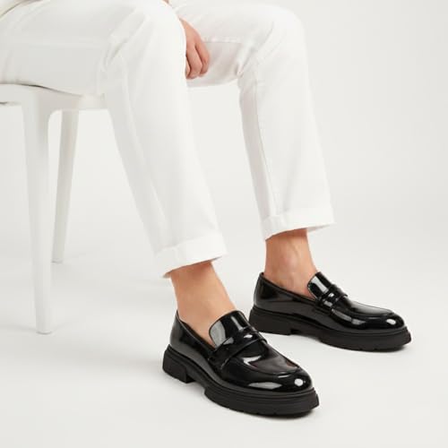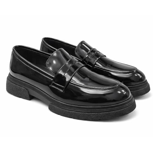 Generic - حذاء لوفر رسمي للرجال من الجلد اللامع - حذاء رسمي كلاسيكي سهل الارتداء للعمل والمناسبات - نعل مضاد للانزلاق -