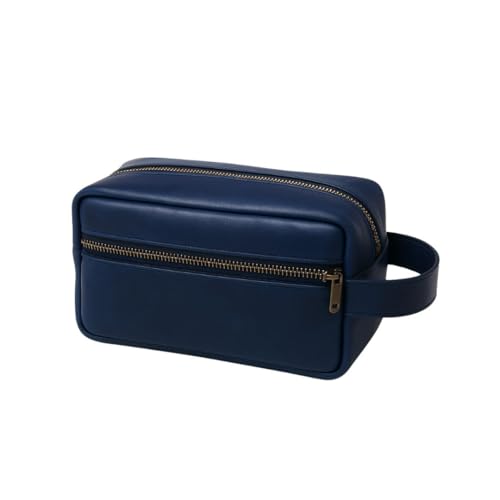Generic - شنطة يد من الجلد الطبيعي للرجال - تصميم بسحاب مزدوج - يمكن استخدامها في السفر - 40 × 20 × 6 سم - ازرق كحلي