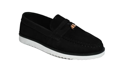 Generic - حذاء بانص سهل للارتداء جلد طبيعي للرجال ألوان مختلفة (أسود, 43)