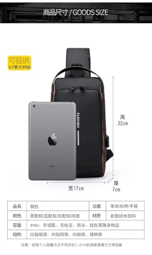 Motevia - شنطة كروس كبيرة متعددة الجيوب للرجال - شنطة صدر او كتف مقاومة للماء بسعة واسعة - شنطة USB مضادة للسرقة مع قفل - شنطة ايباد (اسود)
