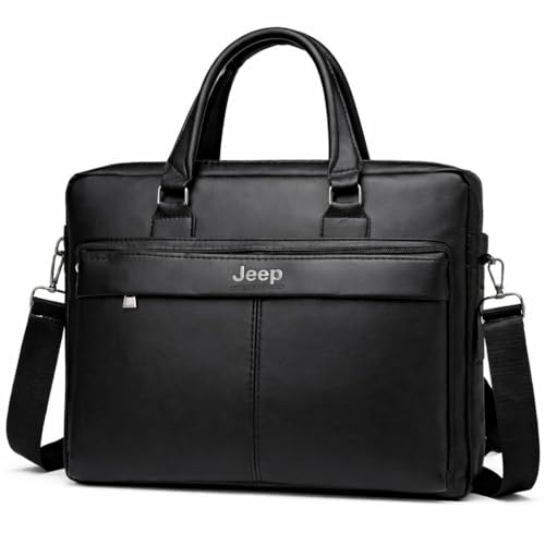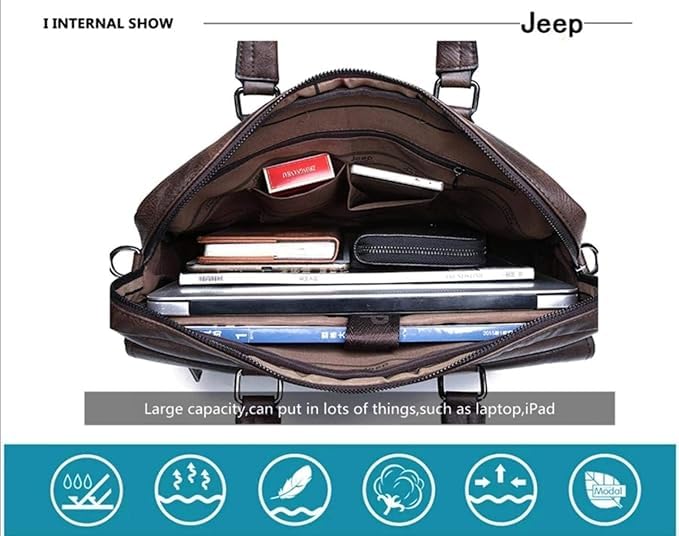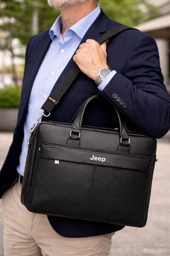 Generic - حقيبة لابتوب جلدية للرجال، حقيبة كتف للعمل والجامعة، أسود