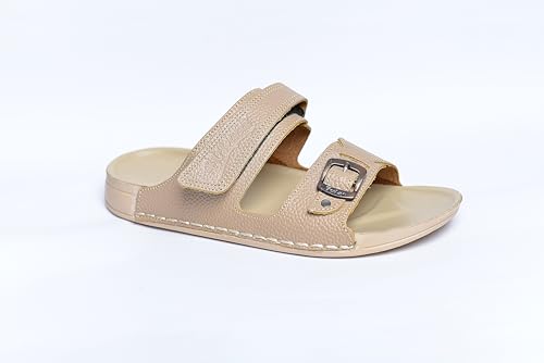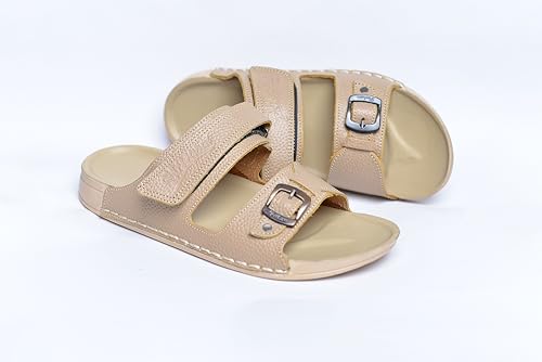 Generic - شبشب رجالي مصنوع من الجلد – سليبر أنيق بنعل رابر مريح ومقاوم للانزلاق - موديل 104beige