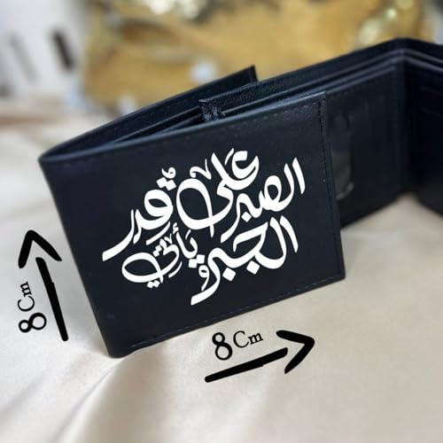 Generic - محفظة جلد للرجال - اسود - 8 سم × 8 سم - حجم صغير - طباعة على جانب واحد - طباعة عربية - على قدر الصبر - هدية للرجال - هدية خاصة - نحن نطبع هديتك