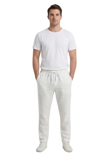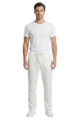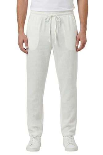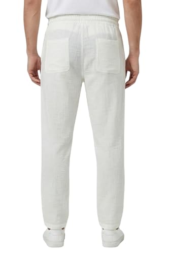 White Rabbit - بنطلون كتان للرجال مصمم بقصة مريحة، لون أبيض