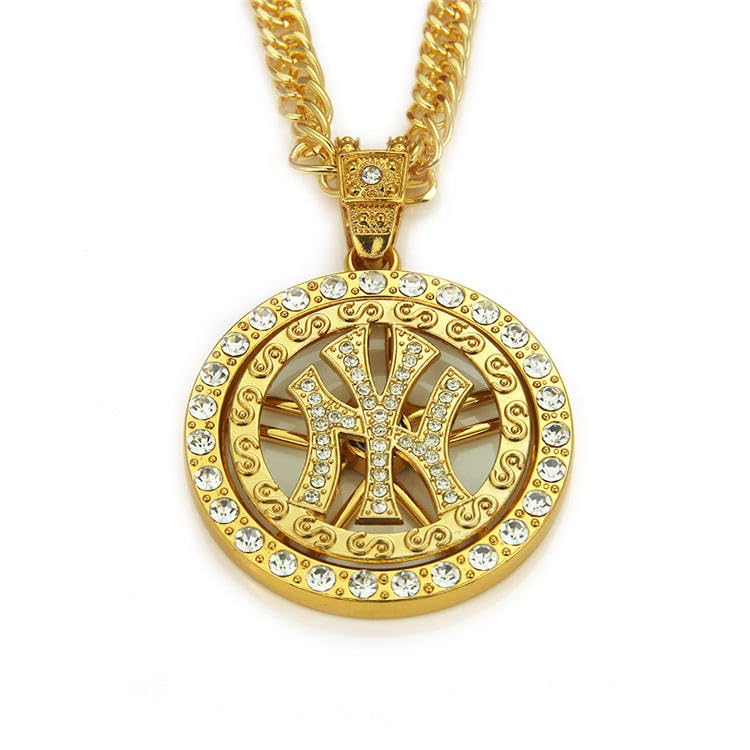 Generic - قلادة رجالية فاخر ةتصميم هيب هوب عصري مرصعة بالكريستال – سلسلة كوبية مثلّجة، مطلية بالذهب، مثالية للحفلات والهدايا