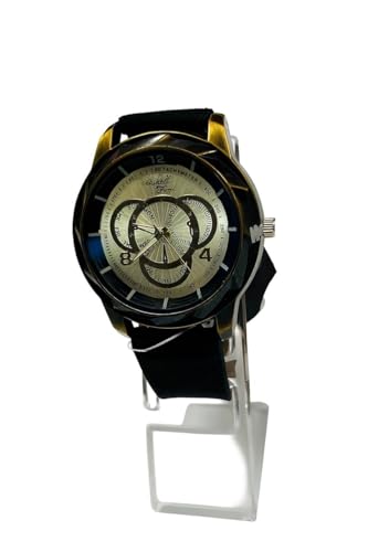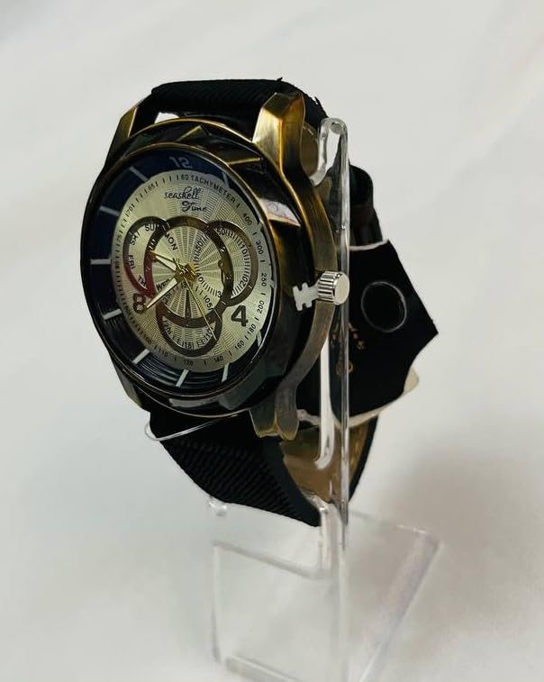 Generic - ساعة فاخرة للرجال بمقياس سرعة الدوران، سوار سيليكون اسود، مينا ذهبي، عرض انالوج مع وظيفة اليوم والتاريخ