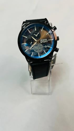 Generic - ساعة يد فاخرة للرجال بمقياس سرعة الدوران، سوار سيليكون اسود، مينا ذهبي اللون، عرض انالوج