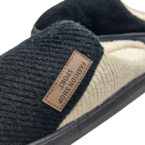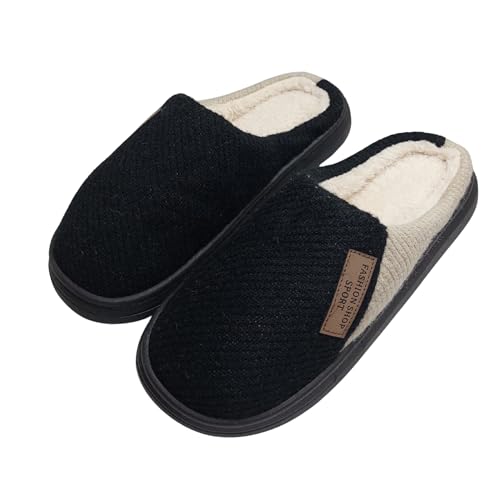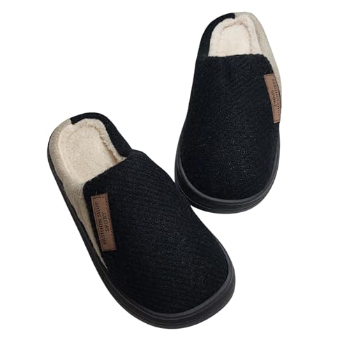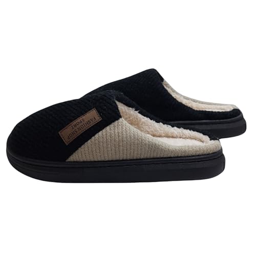 Generic - شبشب منزلي من الميموري فوم للرجال، اسود، مبطن بالصوف المخملي الدافئ، نعل مطاطي مضاد للانزلاق، حذاء مريح في الشتاء للاستخدام الداخلي والخارجي، مقاس 42/43