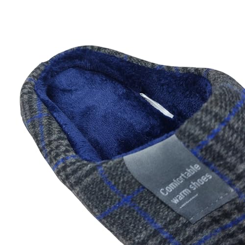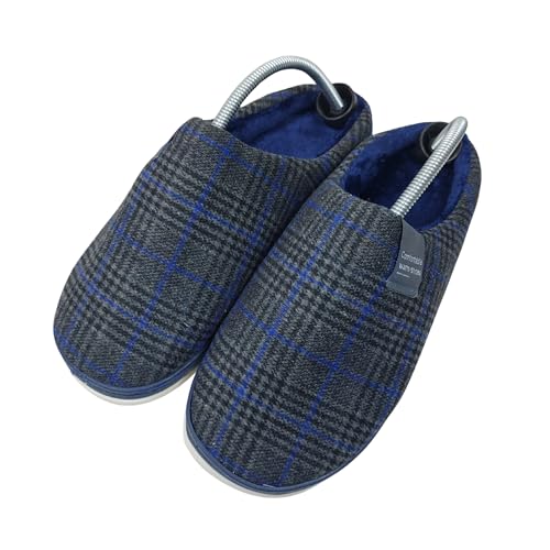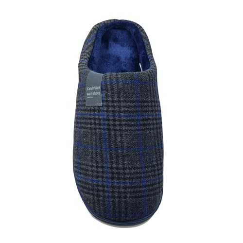 Generic - شبشب رجالي من الميموري فوم، نمط منقوش، حذاء منزلي شتوي داخلي، ازرق كحلي، مقاس 44/45 - لكلوك شتوي