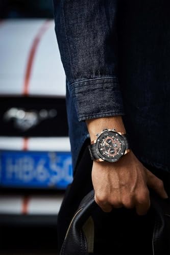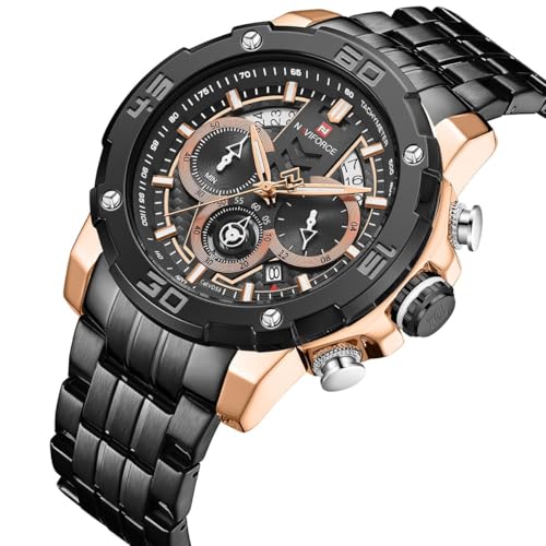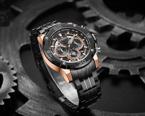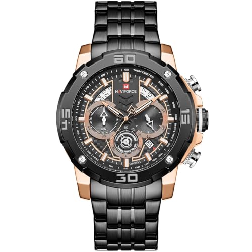 Generic - ساعة يد عسكرية للرجال من الستانلس ستيل، مقاومة للماء، مينا اسود NF9175 RG/B، تناظري