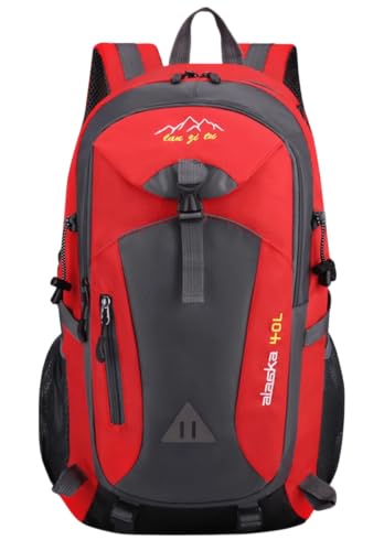 Generic - شنطة ظهر للرجال متعددة الجيوب ومساحات تخزين عالية السعة مقاومة للماء للمشي لمسافات طويلة والسفر والطلاب مع مقبس سماعة رأس، شنطة مدرسية، شنطة مدرسية للتنقل، أحمر