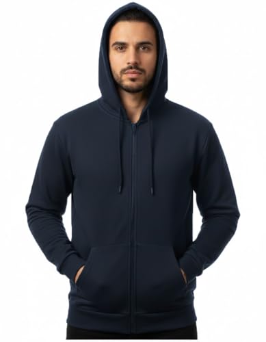 Generic - سويت شيرت كاجوال بغطاء للرأس وسوستة كاملة وجيوب للرجال - أزرق كحلي