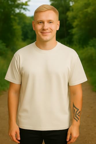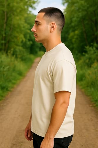 White Classic - تيشرت قطن بقصة عادية وأكمام قصيرة وتصميم عصري 100% ومقاس مريح بيسيك ويسترن للرجال