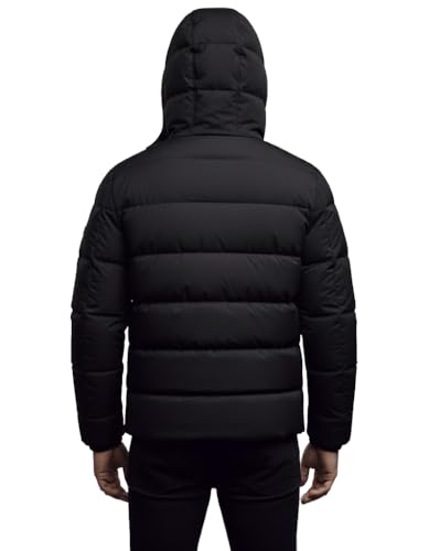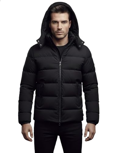 Generic - جاكيت منتفخ للرجال، اسود، معطف شتوي مبطن بغطاء للرأس، سحاب كامل