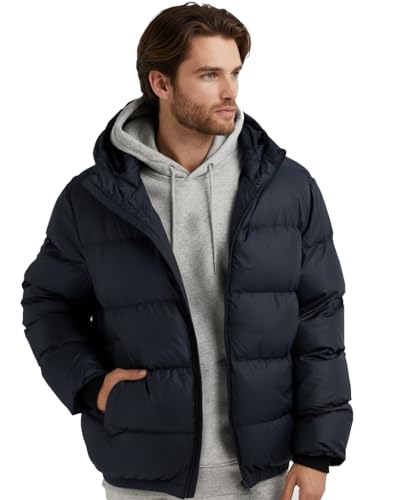 Generic - جاكيت منتفخ للرجال، لون كحلي، معطف شتوي مبطن بغطاء للرأس، ملابس خارجية دافئة معزولة