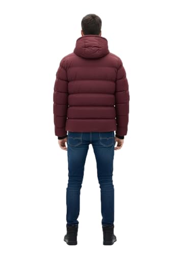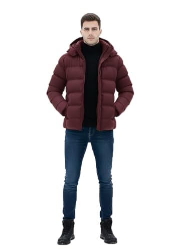 Generic - جاكيت منفوخ بغطاء للراس للرجال، لون بورغندي، معطف شتوي مبطن، ملابس خارجية دافئة معزولة