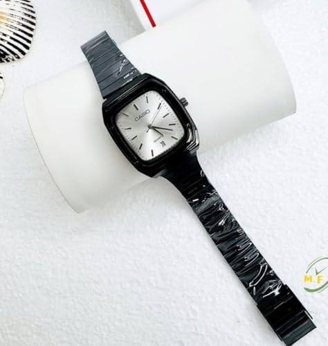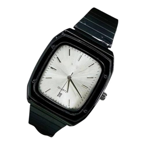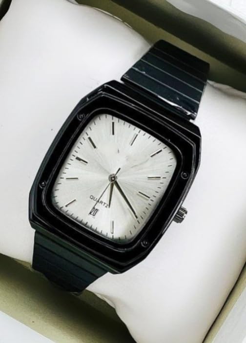 Generic - ساعة يد كوارتز رجالية، هيكل أسود، شاشة بيضاء، حزام معدني، مع تاريخ