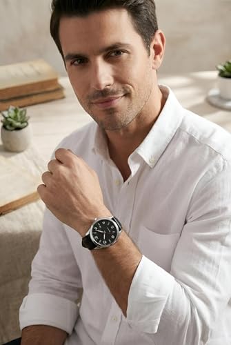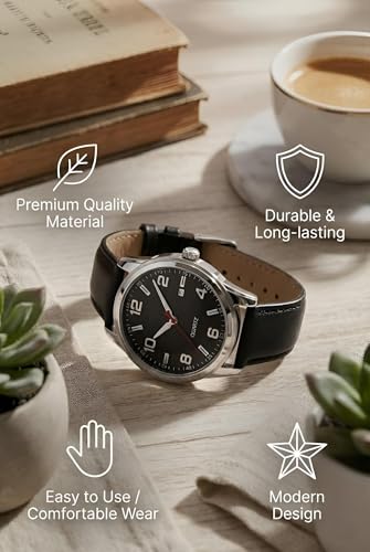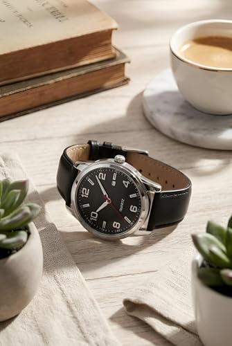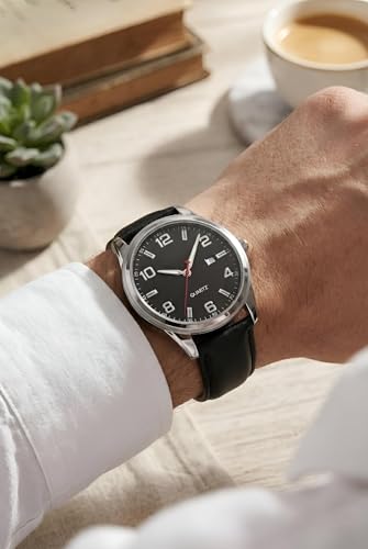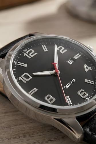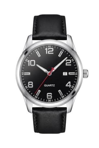 Generic - ساعة يد كوارتز للرجال بهيكل ستيل لامع وسوار جلدي نابض بالحياة ونافذة صغيرة لعرض التاريخ، وتصميم أنيق يناسب ملابس العمل والمناسبات الفاخرة
