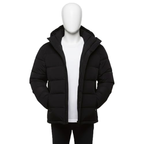 Generic - جاكيت مبطن للرجال بلون اسود، معطف شتوي بغطاء للرأس، اغلاق بسحاب كامل