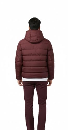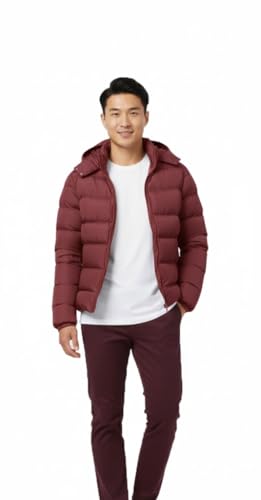 Generic - جاكيت مبطن للرجال، معطف شتوي بغطاء للرأس ونمط سوستة، لون بورجندي