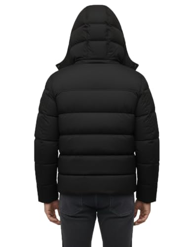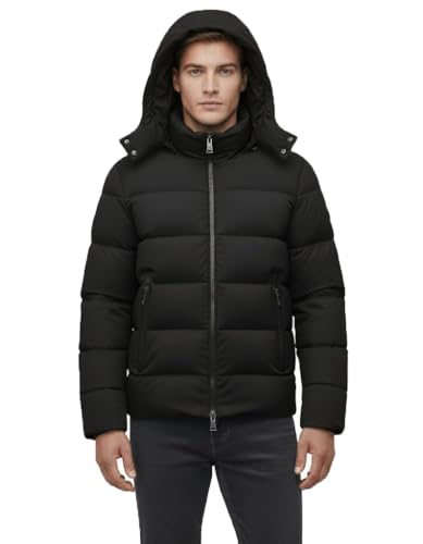 Generic - جاكيت مبطن للرجال بغطاء للرأس، اسود، ملابس خارجية عازلة للشتاء، سحاب امامي