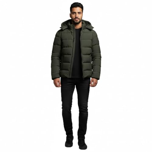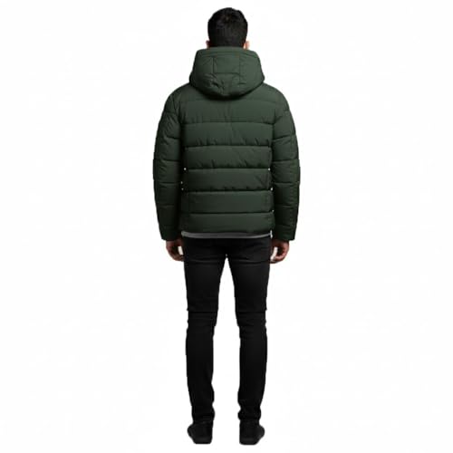 Generic - جاكيت مبطن للرجال بغطاء للرأس، لون أخضر زيتوني، ملابس خارجية شتوية