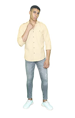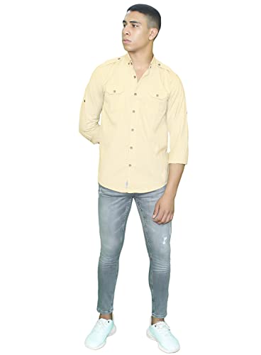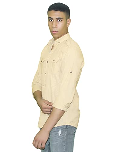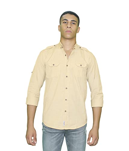 Mony Work - قميص من مزيج القطن بأكمام طويلة وقصة عادية