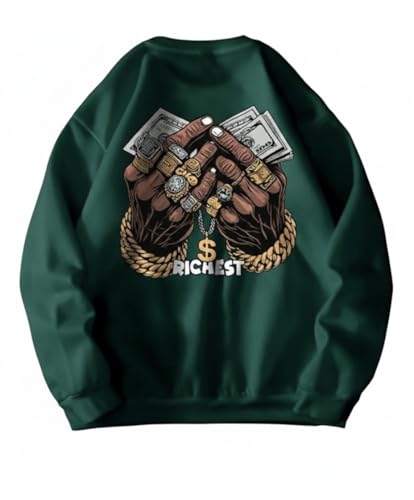 Generic - سويت شيرت رجالي برقبة دائرية واكمام طويلة، اخضر، طباعة نخيل اليد، كاجوال للارتداء اليومي في الخريف، مقاس XXL