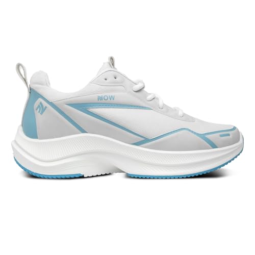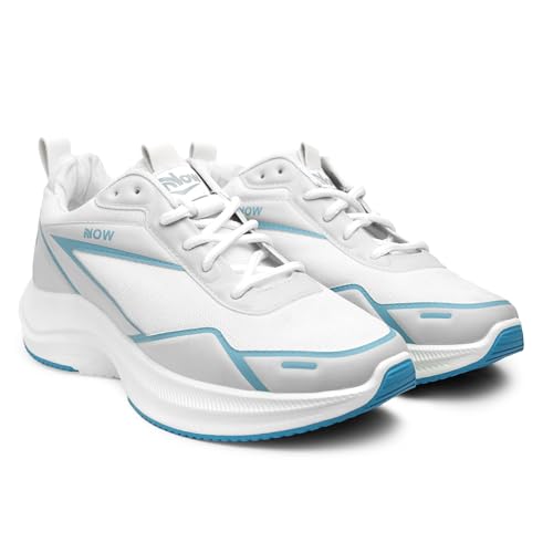 Now Shoes - حذاء الجري للرجال طراز HK-01 خفيف الوزن ومزود بمسامات للتهوية، مريج ومناسب للمشي ولعب التنس، يأتي بكعب غير قابل للانزلاق، بألوان أسود/ أبيض/ رمادي