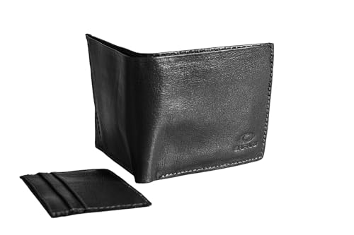 Generic - محفظة جلد طبيعي ثنائية الطي 2 في 1 للرجال (sa 141) مع محفظة بطاقات قابلة للازالة (اسود)