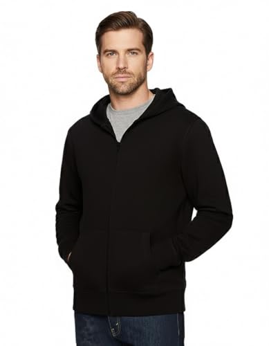 Generic - جاكيت بغطاء للرأس من صوف الشيربا للرجال، مع سوستة كاملة، لون أسود - ملابس خارجية شتوية مريحة