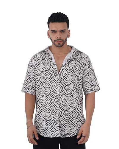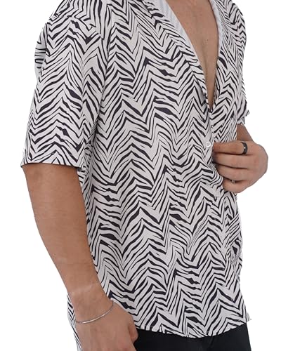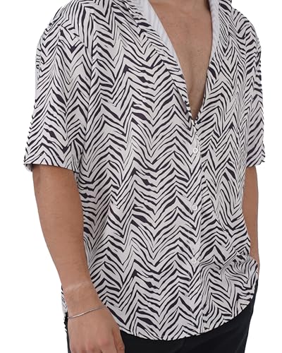 Generic - Men's Shirt Zebra Print Short Sleeve Button Down– Casual Summer Lightweight Animal Pattern Shirt for Beach & Parties