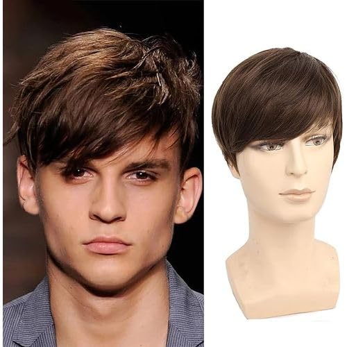 Generic - باروكة شعر مستعار صناعي قصير بتغطية كاملة للرجال، للارتداء اليومي والحفلات والازياء التنكرية بني فاتح