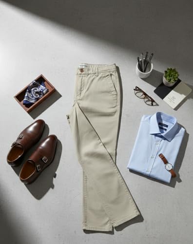 Motevia - بنطلون جبردين قطن ناعم مريح للرجال - قصة ضيقة (Slim) مع مطاطية عالية (Lycra) - مثالي للعمل والخروجات (Beige, 32)