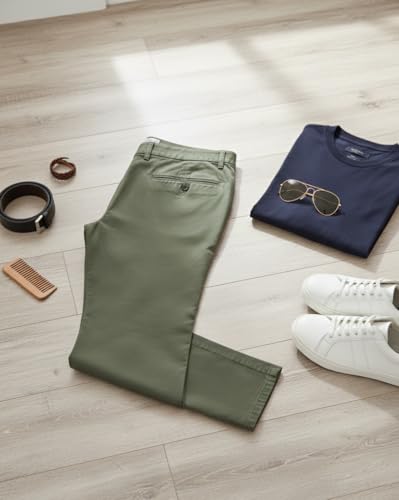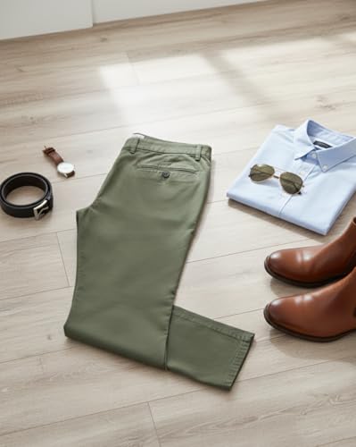 Motevia - بنطلون جبردين قطن ناعم مريح للرجال - قصة ضيقة (Slim) مع مطاطية عالية (Lycra) - مثالي للعمل والخروجات (MintGreen, 34)