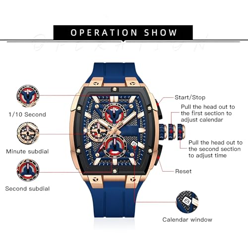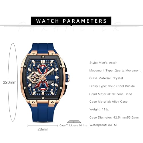 Generic - ساعة كرونوغراف رياضية للرجال - هيكل تونيو متطور، سوار سيليكون، مينا متعدد الوظائف لنمط حياة نشط عصري