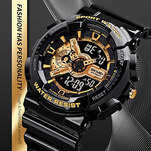 Starshine - ساعة رياضية للرجال، عرض رقمي، مقاومة للماء حتى عمق 50 متر، بنحت مضيء، ذهبية اللون