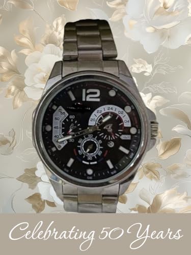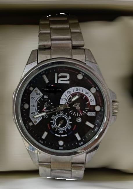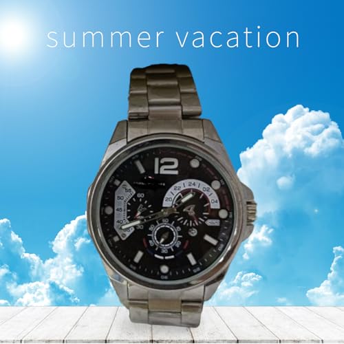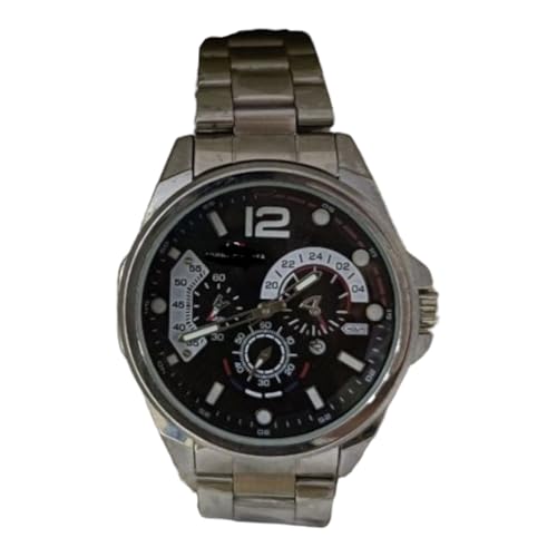 Generic - ساعة يد رجالية رياضية، كرونوغراف متعدد الوظائف، سوار معدني فضي، مينا سوداء