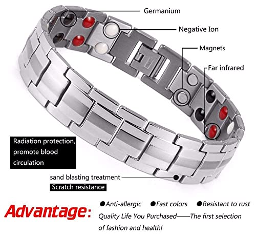 Other - سوار هيلث باور للرجال مصنوع من الستانلس ستيل بمشبك مغناطيسي وحجر الجرمانيوم