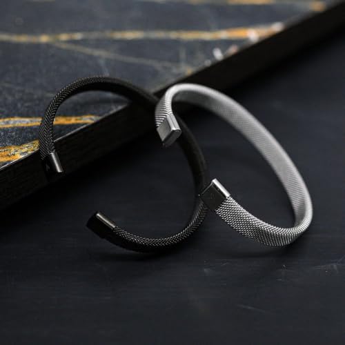 Generic - سوار رجالي من الستانلس ستيل، تصميم شبكي، لون فضي، مقاوم للصدأ والماء، مفتوح من الطرفين