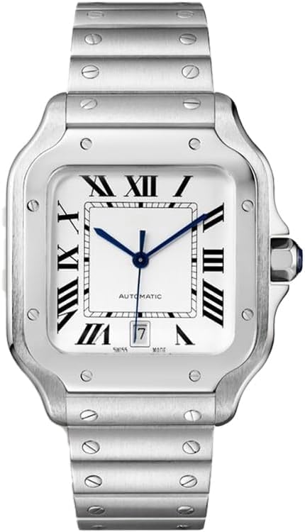 Generic - ساعة رجالية من الستانلس ستيل، مينا أبيض بأرقام رومانية، سوار فضي معدني، تصميم كلاسيكي أنيق