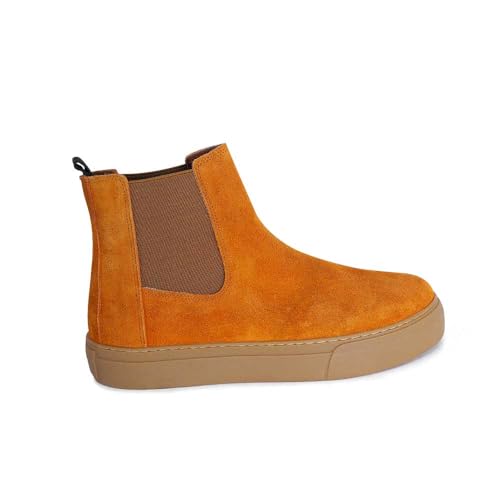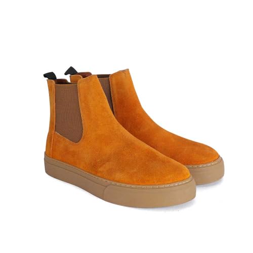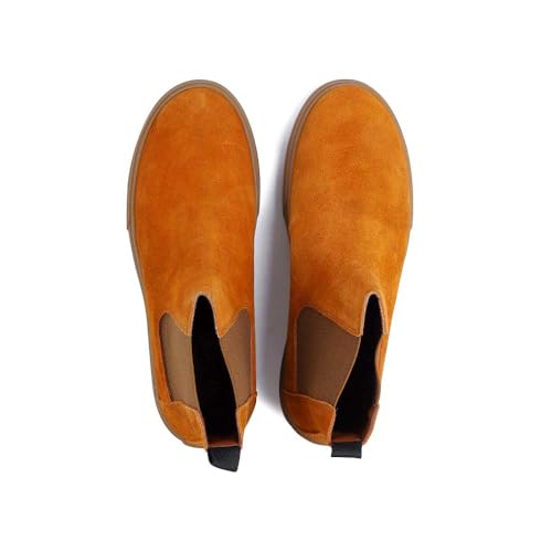 Generic - هاف بوت جلد شمواه للرجال، لون بيج داكن، تصميم سهل الارتداء (جملي، 43)