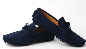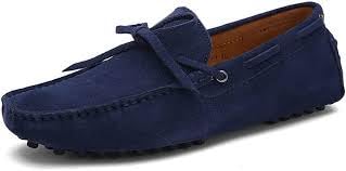 Generic - حذاء رجالي موكاسين جلد الشمواه، كحلي، مقاس 42، نعل مانع للانزلاق، مريح للمشي، ربطة أمامية، نعل مطاطي