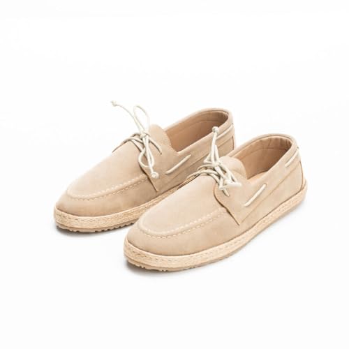 Generic - حذاء رجالي شمواه ، نعل PVC مع خيش ، أستيك إيطالي ، بطانة مدعمة ، كلاسيك أو كاجوال . (بيج, 45)