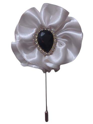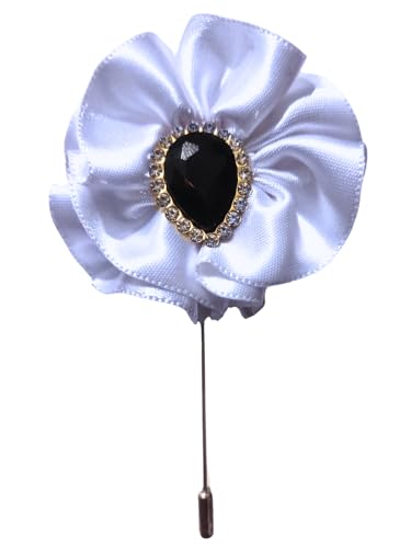 Generic - دبوس بدلة رجالي بروش بدلة على شكل وردة بيضاء مرصع بالاكسسوار