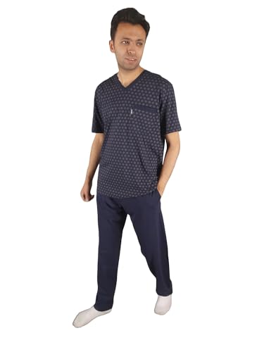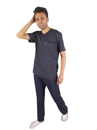 Jet (JET ) - بيجامة صيفي رجالي مطبوعة بأكمام قصيرة ورقبة سبعة وبنطلون طويل - كحلى