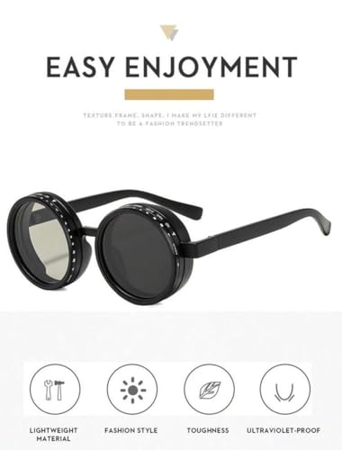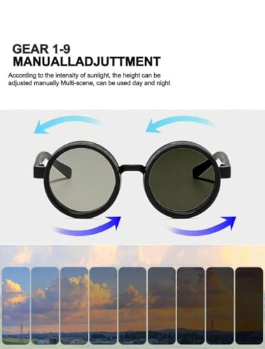 Generic - نظارة شمس رجالى بعدسات دائرية قابلة للتعديل وفلتر ان دي 9 مستويات للتفتيح والتعتيم