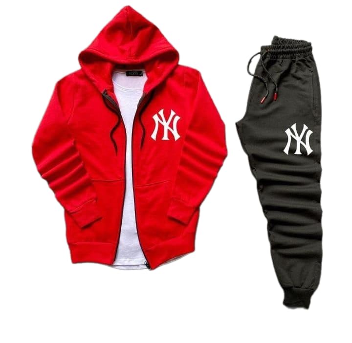 Generic - بدلة رياضية رجالية، هودي أحمر وبنطلون رمادي، ، قطن مخلوط